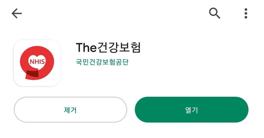 3. 설치가 완료되면 초록색 버튼이 '열기'로 바뀝니다. '열기'를 눌러서 건강보험 어플을 실행시켜 주시기 바랍니다.